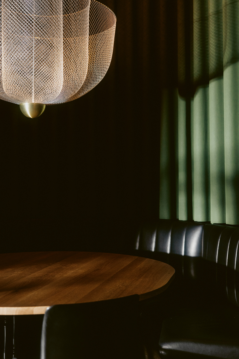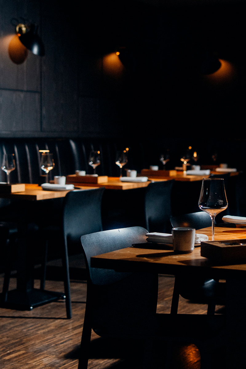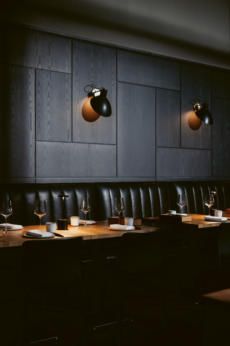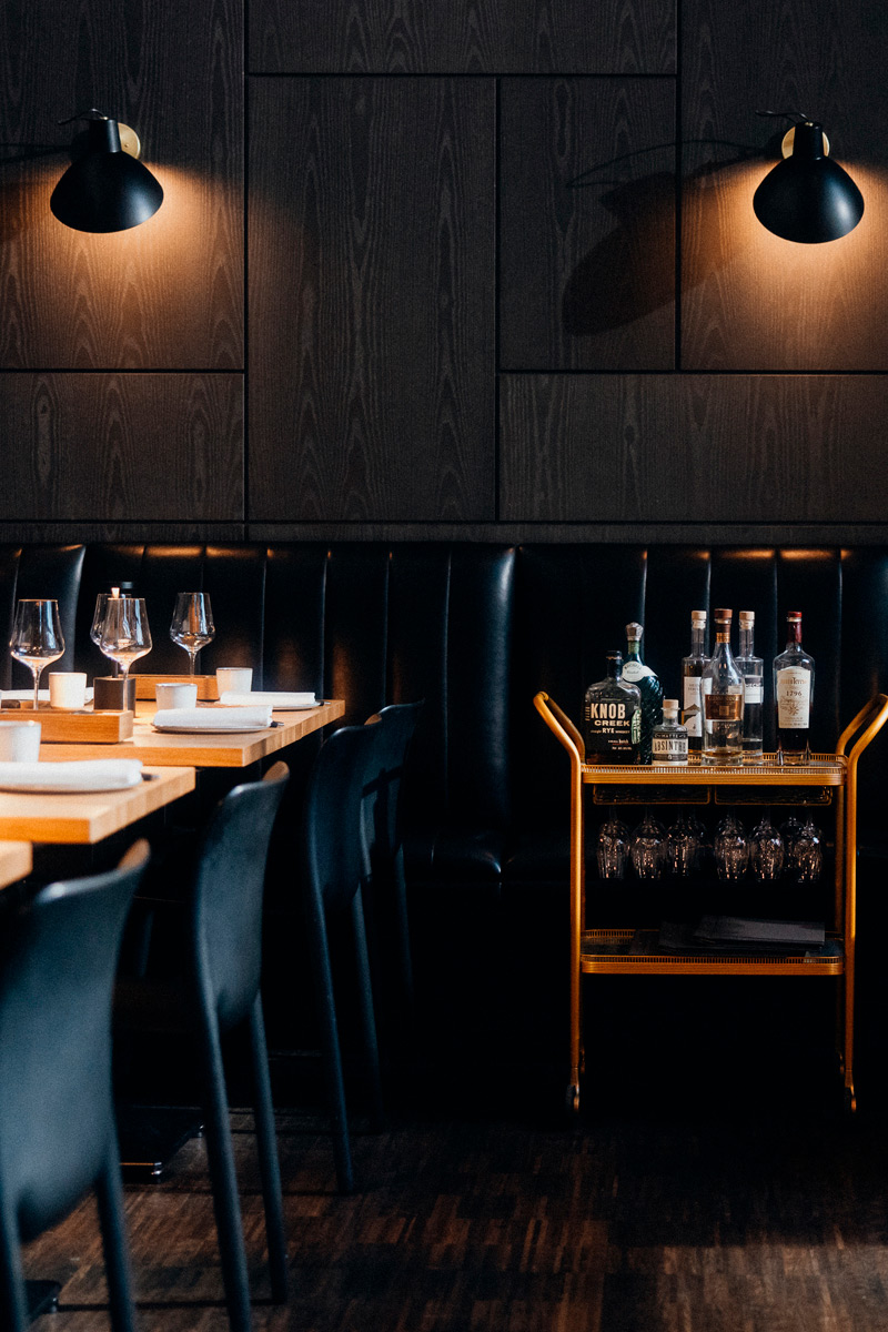 Hier lässt’s sich stilvoll geniessen: In Zusammenarbeit mit der Innenarchitektin Kathrin Wiedmer und der Schreinerei Dürig + Völkel entstanden diese eleganten und bequemen Sitzmöbel im Restaurant Steinhalle.  Die Sattlerei Fiona Losinger war dabei zuständig für die Polster- und Lederarbeiten.
